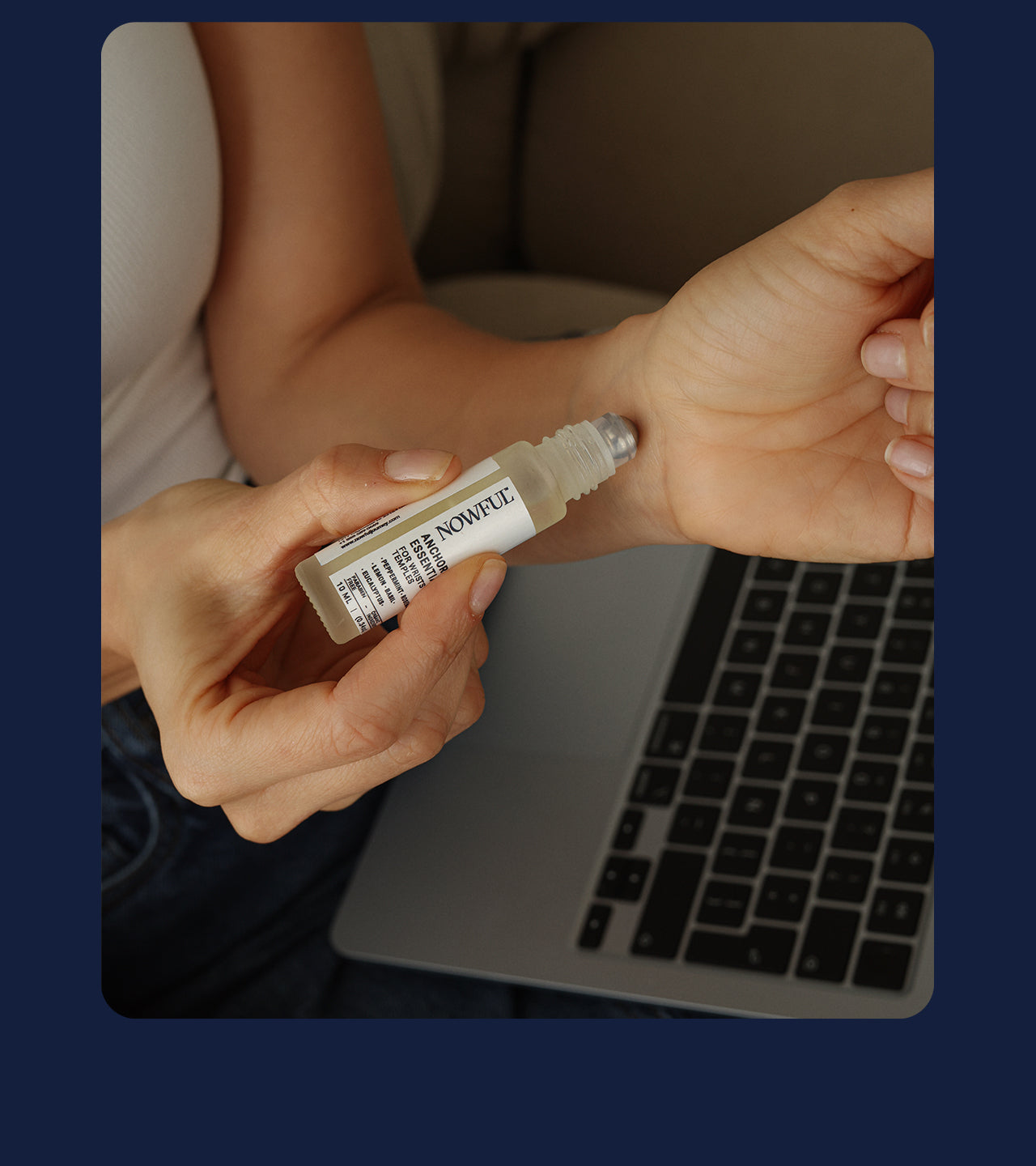 Apply Anchor Essential Oil to your wrists or neck.